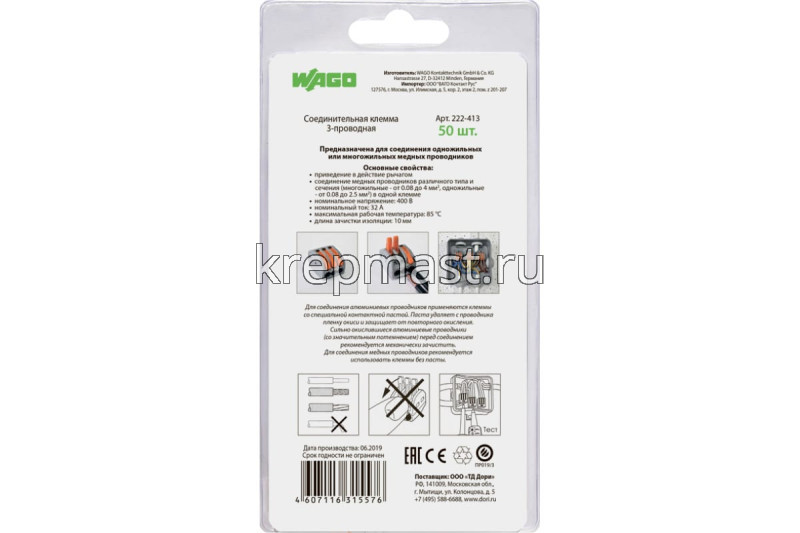 Соединительная 3-х проводная клемма WAGO СК 412 используется для соединения проводов с одной или несколькими жилами, а также разных сечений.