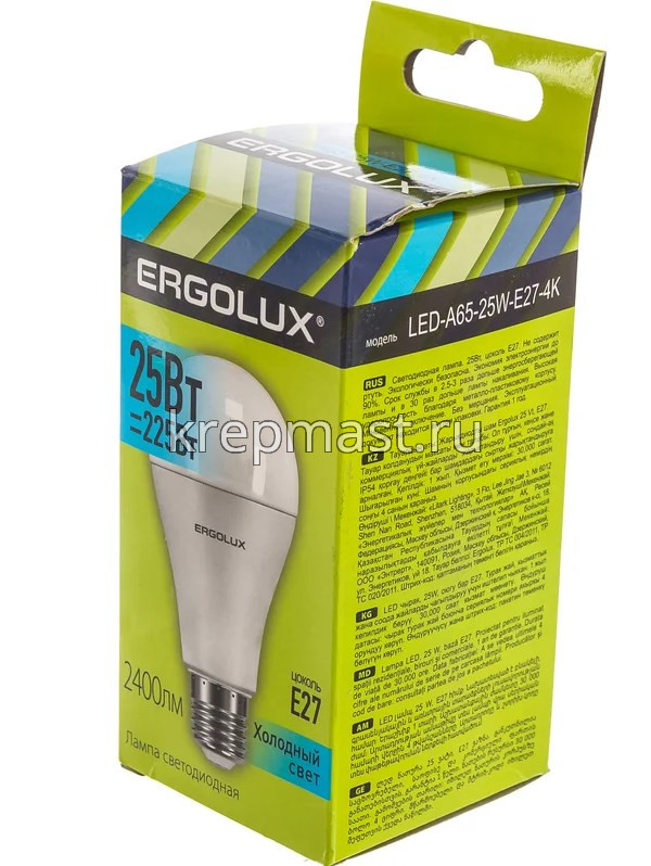 Лампа А65 25Вт Е27 4500К в интернет-магазине «Мастер Крепежа» по цене 199 руб. Более 11 наименований товаров в наличии в категории Лампы светодиод. А60. Купить лампа а65 25вт е27 4500к в Елабуге выгодно Вы можете on-line на нашем сайте, или отправив заявку по почте, а также по телефону или в пункте выдачи компании г. Казань, ул. Татарстан, 9, магазин "Мастер Крепежа". Доставка по Республике Татарстан и другие регионы РФ.