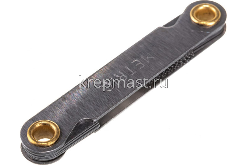 Шаблон для определения шага метрической резьбы (резьбомер) – инструмент, определяющий главные параметры резьбы. Используется для проверки точности метрической нарезки. Резьбомеры помогают быстро оценить точность выполненной нарезки и величину ее основных элементов.