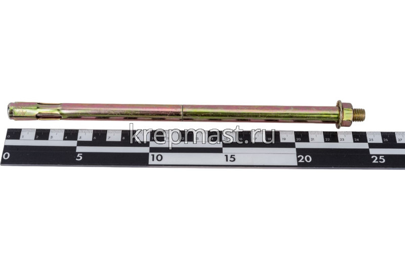Анкер с гайкой 12 х 250изготовлен из высокоуглеродистой стали со специальным цинковым покрытием и применяется для надежного крепления тяжеловесных конструкций к твердым основаниям из полнотелых материалов.