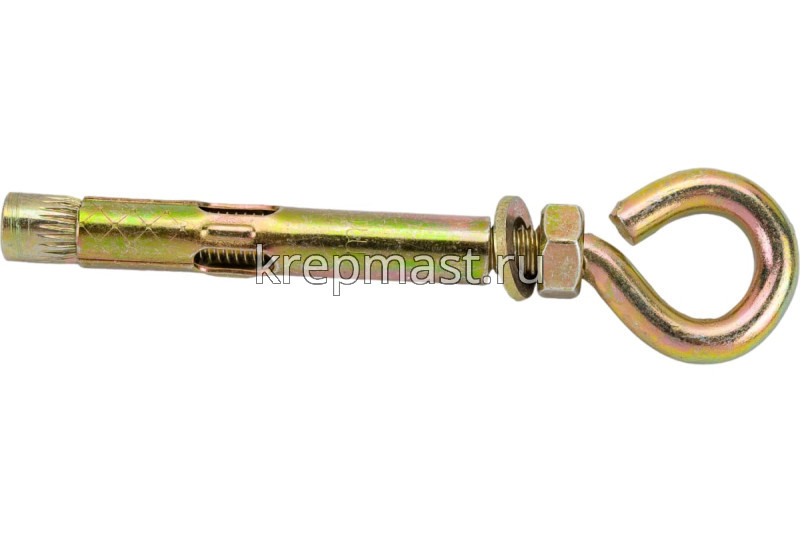 Анкерный болт с кольцом 8 х 60 является элементом крепежа для фиксации тяжелых подвесных конструкций, соединения с тросами и цепями.