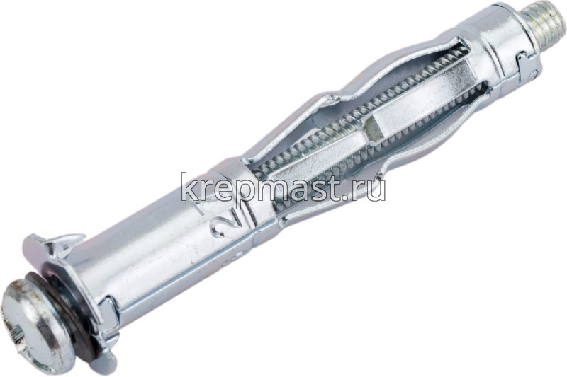 Дюбель с винтом Молли М6 х 63 — специальный вид крепежа, разработанный для работы с гипсокартоном, листами ДСП, блоками из пенобетона и другими пустотелыми материалами.
