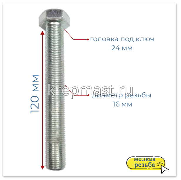 Болт DIN 961 16х120х1,5 кл.пр. 8,8 ОЦИНК. п/р с мелкой резьбой в Набережных Челнах
