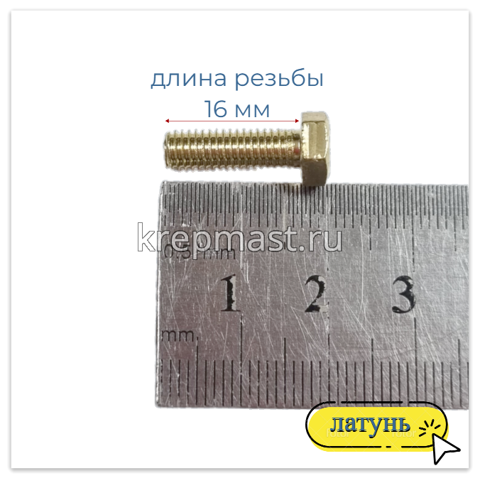 Болт 5х16 DIN 933 латунь в интернет-магазине «Мастер Крепежа» по цене 38 руб. Более 26 наименований товаров в наличии в категории Болты латунные DIN 933. Купить болт 5х16 din 933 латунь в Нижнекамске выгодно Вы можете on-line на нашем сайте, или отправив заявку по почте, а также по телефону или в пункте выдачи компании г. Казань, ул. Татарстан, 9, магазин "Мастер Крепежа". Доставка по Республике Татарстан и другие регионы РФ.