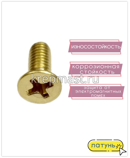 Винт потай 4,0 х10 DIN 965 латунь в интернет-магазине «Мастер Крепежа» по цене 10 руб. Более 9 наименований товаров в наличии в категории Винты латунные потай DIN 965. Купить винт потай 4,0 х10 din 965 латунь в Чистополе выгодно Вы можете on-line на нашем сайте, или отправив заявку по почте, а также по телефону или в пункте выдачи компании г. Казань, ул. Татарстан, 9, магазин "Мастер Крепежа". Доставка по Республике Татарстан и другие регионы РФ.