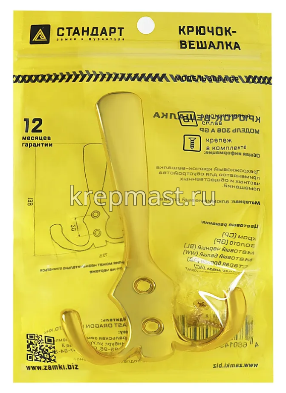 Крючок 306 А GР золото СТАНДАРТ в интернет-магазине «Мастер Крепежа» по цене 132 руб. Более 12 наименований товаров в наличии в категории Крючок-вешалка. Купить крючок 306 а gр золото стандарт в Казани выгодно Вы можете on-line на нашем сайте, или отправив заявку по почте, а также по телефону или в пункте выдачи компании г. Казань, ул. Татарстан, 9, магазин "Мастер Крепежа". Доставка по Республике Татарстан и другие регионы РФ.