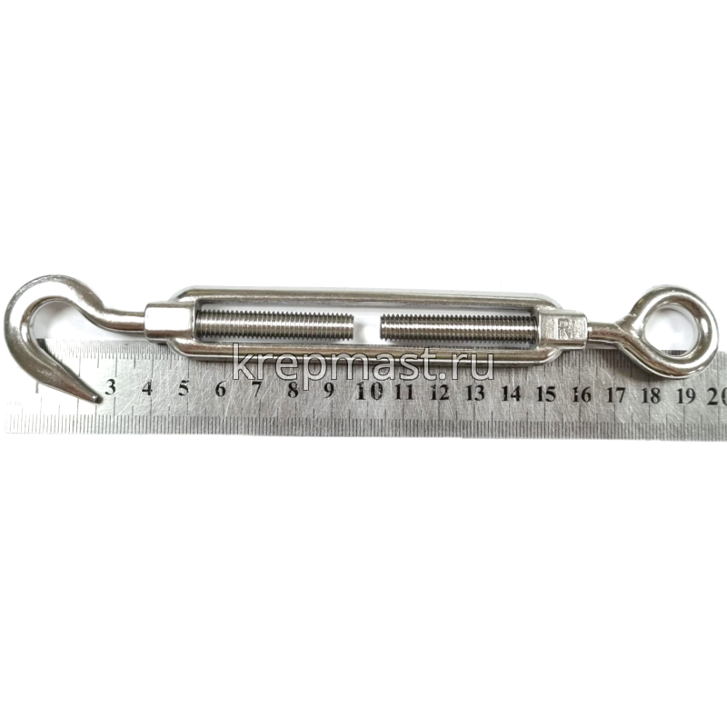 Талреп М 8 А2 нержавеющий крюк-кольцо приспособление, которое предназначено для стягивания такелажных элементов (тросов, цепей, канатов).Талрепы активно используются в строиетльных работах, грузоперевозках. Талреп изготовлен из нержавеющей стали А2, и имеет стойкость к коррозии.