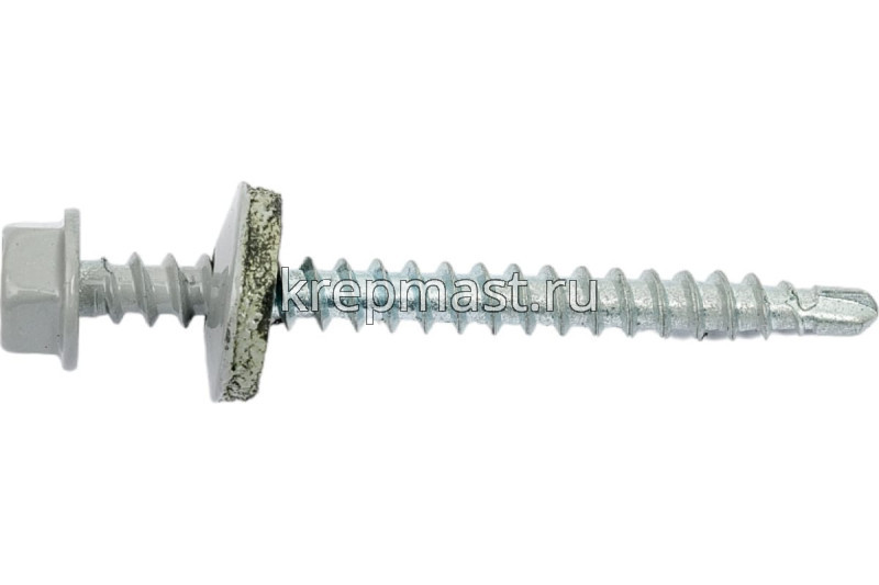 Кровельный саморез окрашенный с шайбой и резиновой прокладкой EPDM DIN 7504 4,8 х 51 по дереву RAL 7004 (цвет серый) - представляет из себя саморез с шестигранной головкой, фланцем и резиновой прокладкой для эффективного прижатия листового металла к основанию.