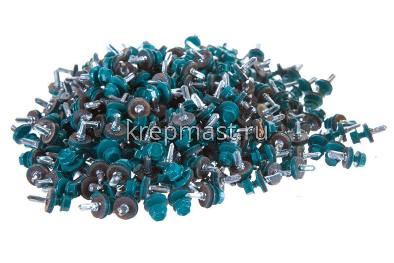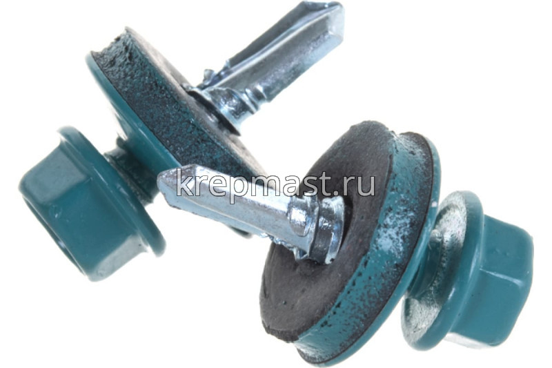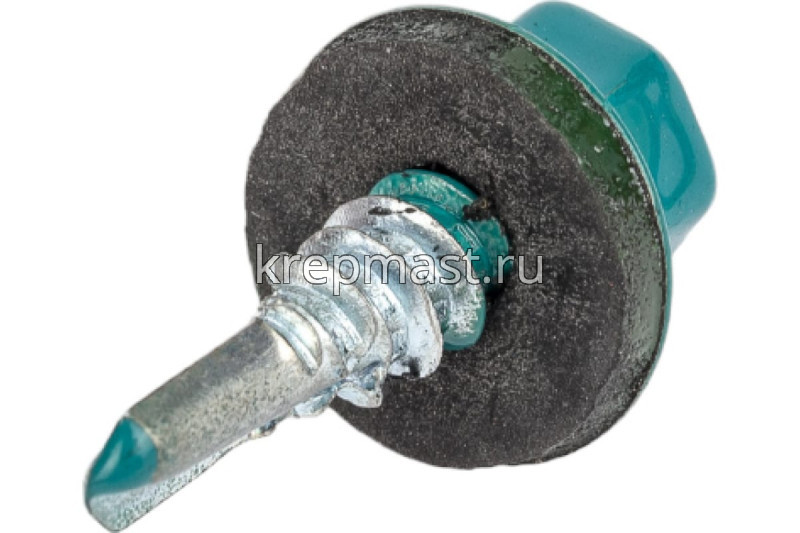 Кровельный саморез окрашенный с шайбой и резиновой прокладкой EPDM DIN 7504 5,5 х 19 по металлу RAL 5021 (цвет морская волна) - представляет из себя саморез с шестигранной головкой, фланцем и резиновой прокладкой для эффективного прижатия листового металла к основанию.