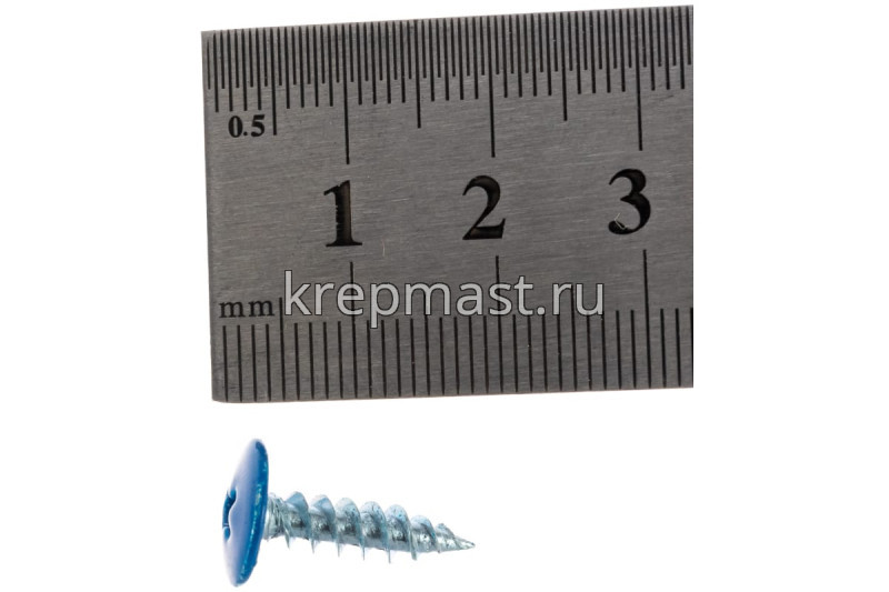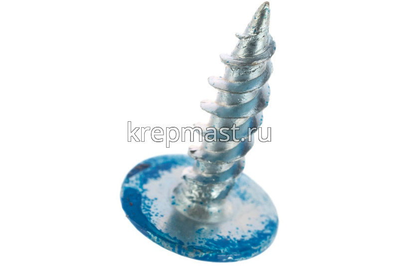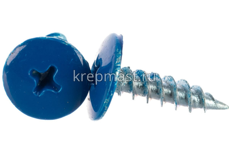 Саморез окрашенный по металлу с полусферической головкой и пресс-шайбой, острый наконечник 4.2 x 16 RAL 5005 (цвет ярко-синий) применяется для отделочных работ и в мебельном производстве.