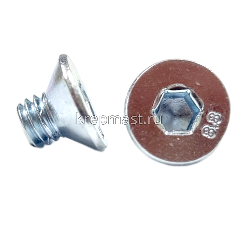 Винт с потайной головкой и внутренним шестигранником DIN 7991 М6 х 8 классом прочности 8.8 применяется в качестве деталей соединенияв машиностроении, станкостроении, строительстве. Такой высокопрочный винт устанавливается для крепления в зенкованное отверстие с метрической резьбой в любые металлы и твердые пластмассы.