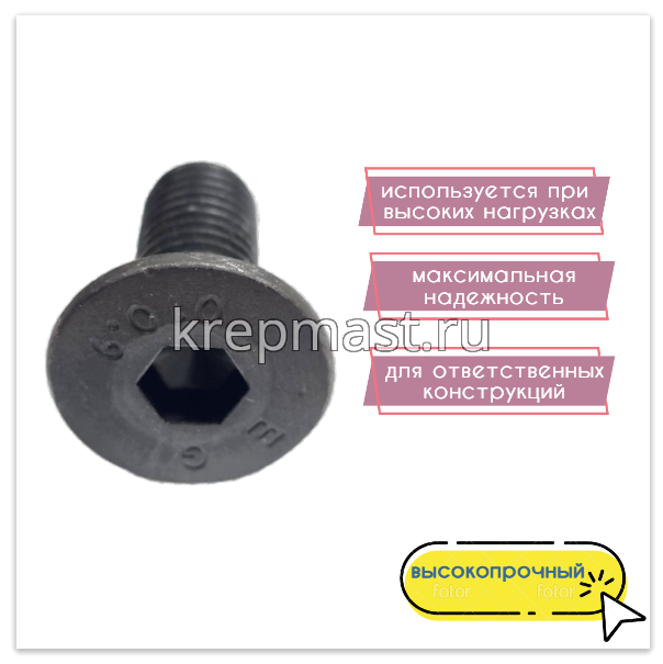Винт с внут. шестиг. потай голов. 12х 30 кл.пр.10,9 DIN 7991 оц. / черный в интернет-магазине «Мастер Крепежа» по цене 55 руб. Более 10 наименований товаров в наличии в категории Винт DIN 7991 с внутр.шестигр. (потай) 12мм. Купить винт с внут. шестиг. потай голов. 12х 30 кл.пр.10,9 din 7991 оц. / черный в Казани выгодно Вы можете on-line на нашем сайте, или отправив заявку по почте, а также по телефону или в пункте выдачи компании г. Казань, ул. Татарстан, 9, магазин "Мастер Крепежа". Доставка по Республике Татарстан и другие регионы РФ.