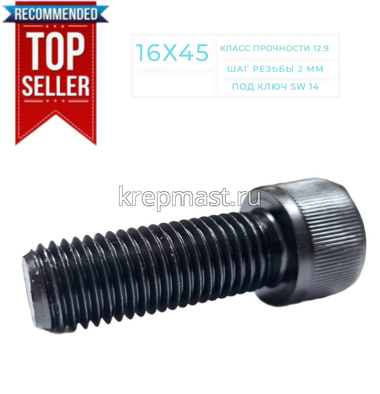 Винт с цилиндрической головкой и внутренним шестигранником DIN 912 М16 х 45 классом прочности 12.9 (ГОСТ 11738) применятеся в качестве деталей соединения в машиностроении, станкостроении, строительстве.