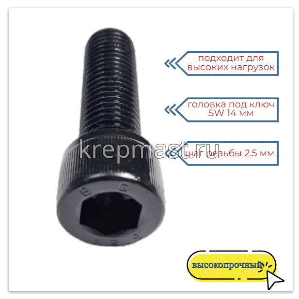 Винт с внутр.шестигранником 18 х 60 черный кл.пр.12.9 п/р DIN 912 в интернет-магазине «Мастер Крепежа» по цене 263 руб. Более 5 наименований товаров в наличии в категории Винт с внутр.шестигранником 18мм. Купить винт с внутр.шестигранником 18 х 60 черный кл.пр.12.9 п/р din 912 в Нижнекамске выгодно Вы можете on-line на нашем сайте, или отправив заявку по почте, а также по телефону или в пункте выдачи компании г. Казань, ул. Татарстан, 9, магазин "Мастер Крепежа". Доставка по Республике Татарстан и другие регионы РФ.