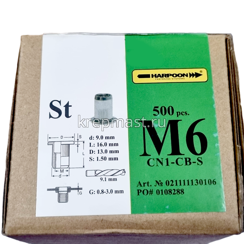 Гайка-заклепка HARPOON М 6 х 16,5мм CN1-CB-S цилиндрический борт, первая длина в Набережных Челнах