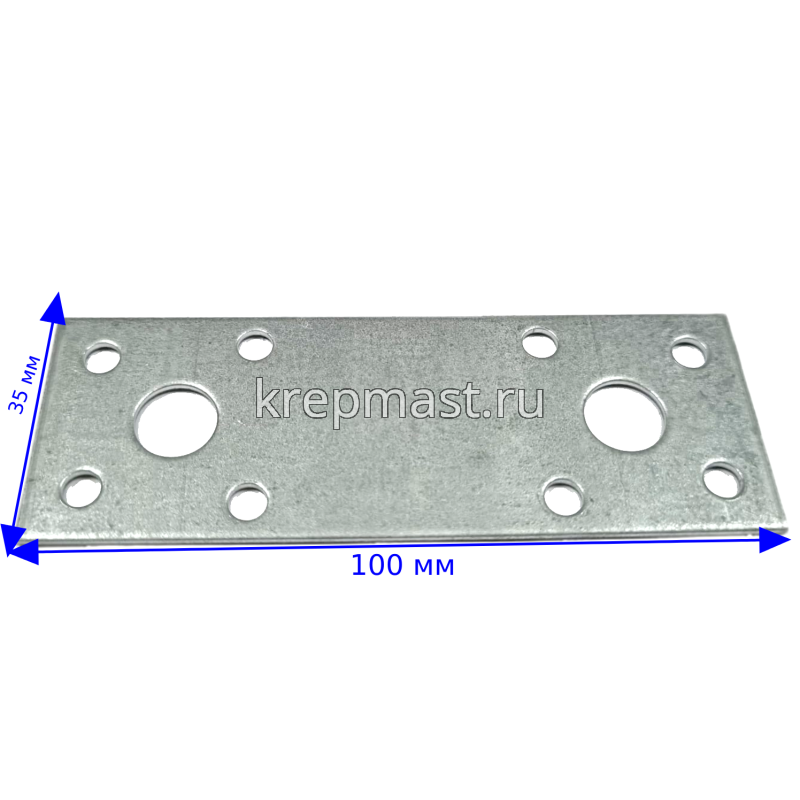 Крепежная пластина LP1 100x35x2 мм применяется для соединения и упрочнения конструкций при помощи нескольких дюбелей, анкеров, саморезов.