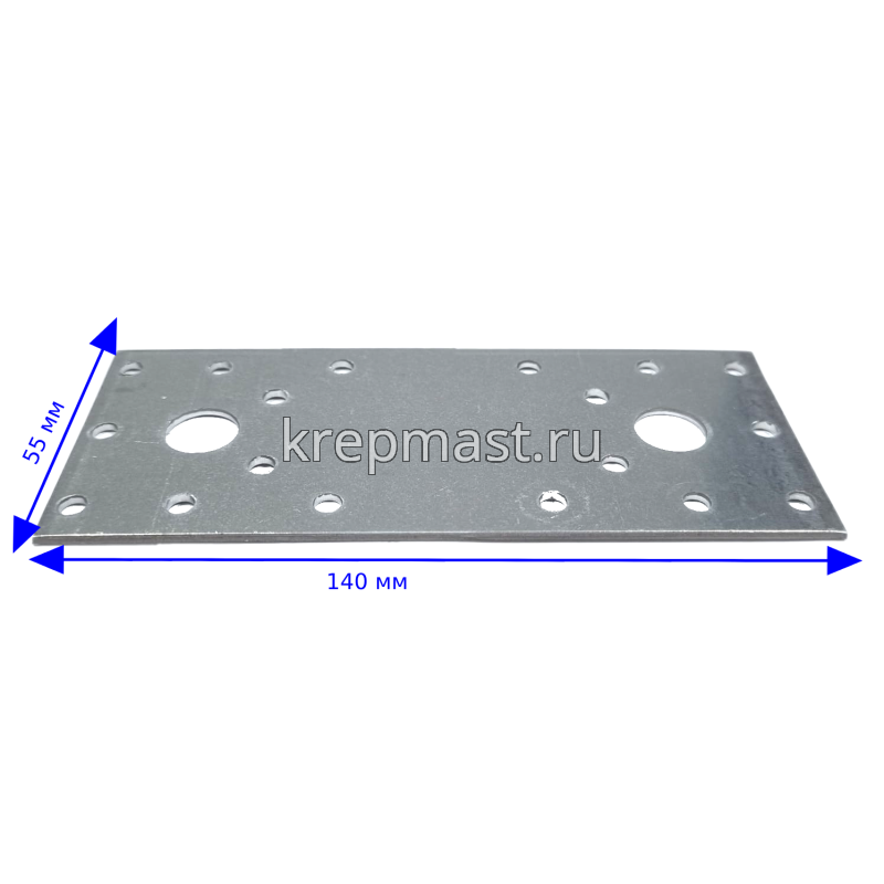 Крепежная пластина LP2 140x55x2,5мм применяется для соединения и упрочнения конструкций при помощи нескольких дюбелей, анкеров, саморезов.