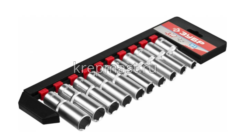 Набор ЗУБР головок торцевых удлиненные 1/2" (10-19мм) 10пред. в Казани
