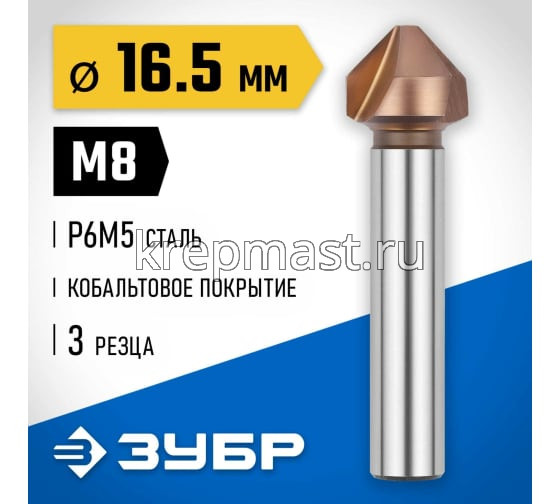 Зенкер ЗУБР конус, цилиндр.хвост. 8мм(д.16,5х60мм) в Казани
