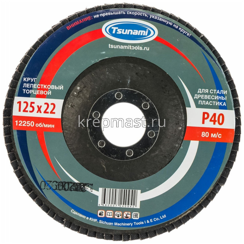 Диск лепестковый 125х22 Р- 40 ЛУГА / TSUNAMI в интернет-магазине «Мастер Крепежа» по цене 134 руб. Более 23 наименований товаров в наличии в категории Диск лепестковый торцевой для УШМ пос.d=22,2. Купить диск лепестковый 125х22 р- 40 луга / tsunami в Казани выгодно Вы можете on-line на нашем сайте, или отправив заявку по почте, а также по телефону или в пункте выдачи компании г. Казань, ул. Татарстан, 9, магазин "Мастер Крепежа". Доставка по Республике Татарстан и другие регионы РФ.