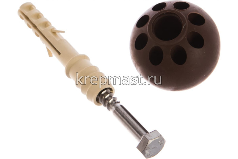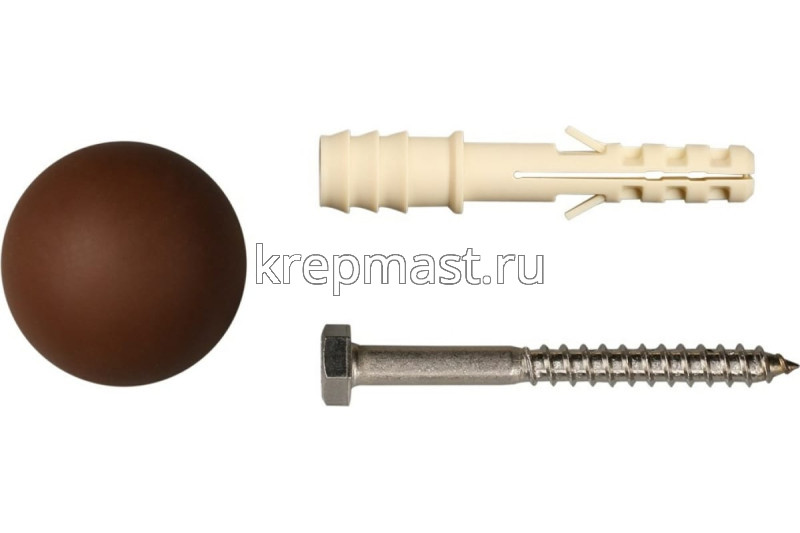 Ограничитель дверной ЕВРОПАРТНЕР коричневый - комплект, состоящий из нейлонового дюбеля, установочного нержавеющего шурупа и декоративного сферического ограничителя различных расцветок. Ограничитель диаметром 35 мм изготовлен из износостойкого эластомера. Крепление к полу осуществляется при помощи шурупа и дюбеля.