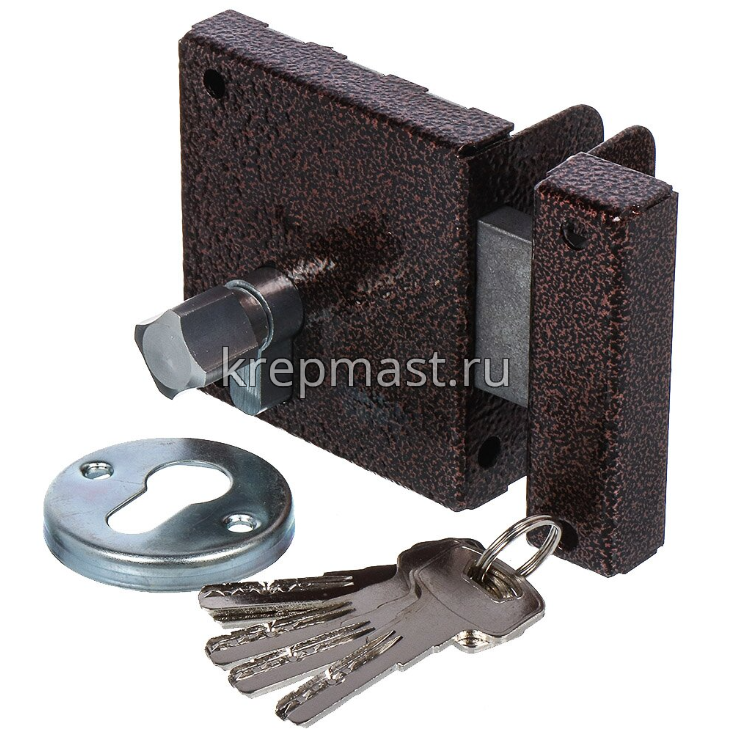 Замок накладной Птимаш ЗН1-1 медь предназначен для установки на деревянные и легкие металлические двери. Подходит для тамбурных дверей, так как вертушка не имеет фиксированных положений.