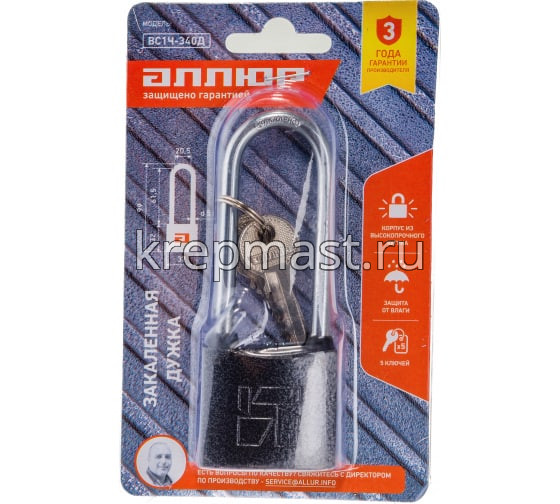 Замок навесной АЛЛЮР ВС1Ч-340Д d.5мм дл.дужка в Набережных Челнах